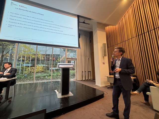 Ce chantier majeur, initié par l’État, avait fait l’objet d’une séquence de co-construction lors de la CRFB de l’an dernier et avait permis d’alimenter la feuille de route francilienne de la transition écologique publiée par le Préfet de région en avril 2025 pour réduire les émissions de CO2 à horizon 2050. Un point d’étape sur la mise en œuvre de cette feuille de route (valorisation de la ressource feuillue et l’accélération de la construction bois, amélioration de la connaissance et de la prévention du risque incendie, dynamisation du renouvellement forestier…) a été fait en séance par la DRIAAF. Le dispositif de la Planification écologique étant un dispositif dynamique, les acteurs du territoire sont invités à déposer leurs projets en matière d’adaptation au changement climatique sur le site : https://demarches.numerique.gouv.fr/commencer/action-d-adaptation-cop-regionale-2025