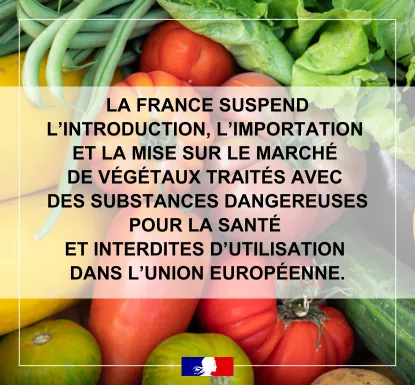 A l’initiative d’Annie GENEVARD et de Serge PAPIN, la France suspend l’introduction, l’importation et la mise sur le marché de végétaux traités avec des substances dangereuses pour la santé et interdites d’utilisation dans l’Union européenne.